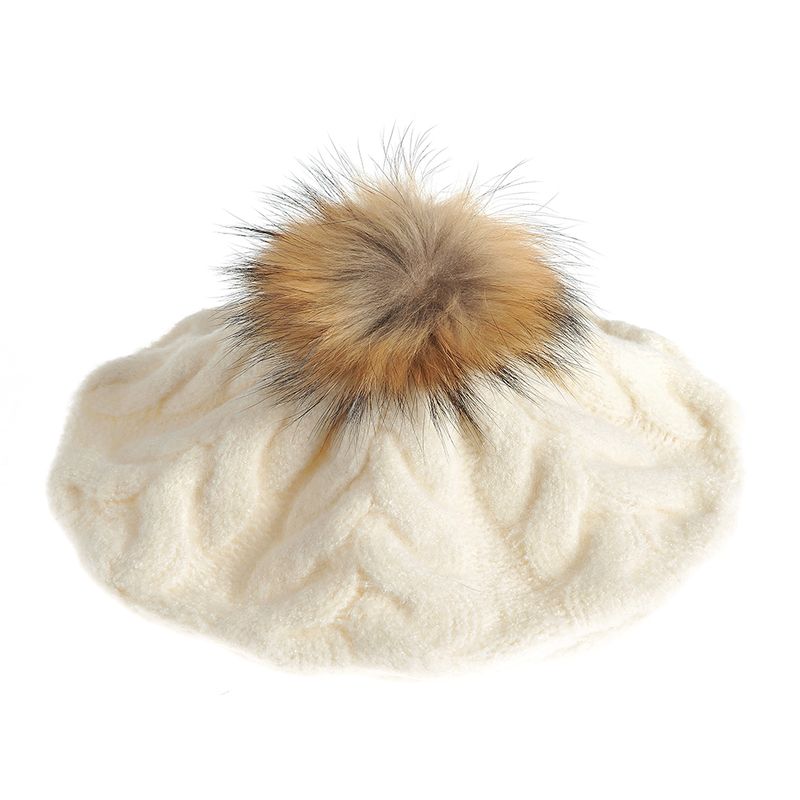 FemeiAccesoriiCaciuliBereta alba cu puf maro