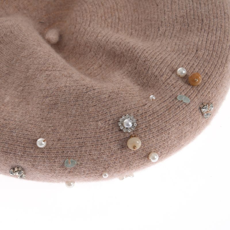 FemeiAccesoriiCaciuliBereta bej cu pietre decorative