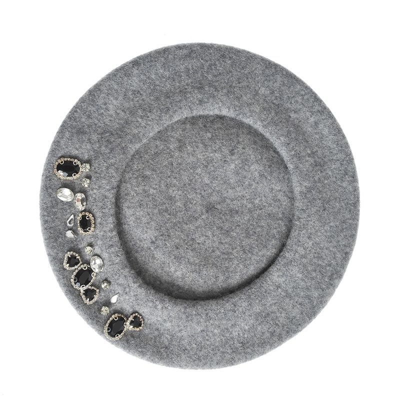 FemeiAccesoriiCaciuliBereta gri decorata cu pietre negre