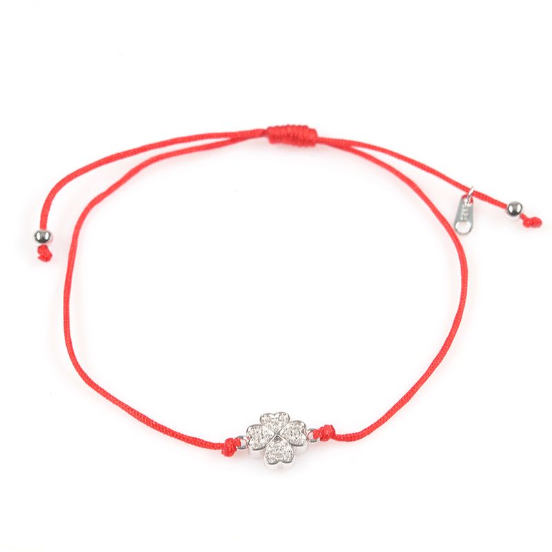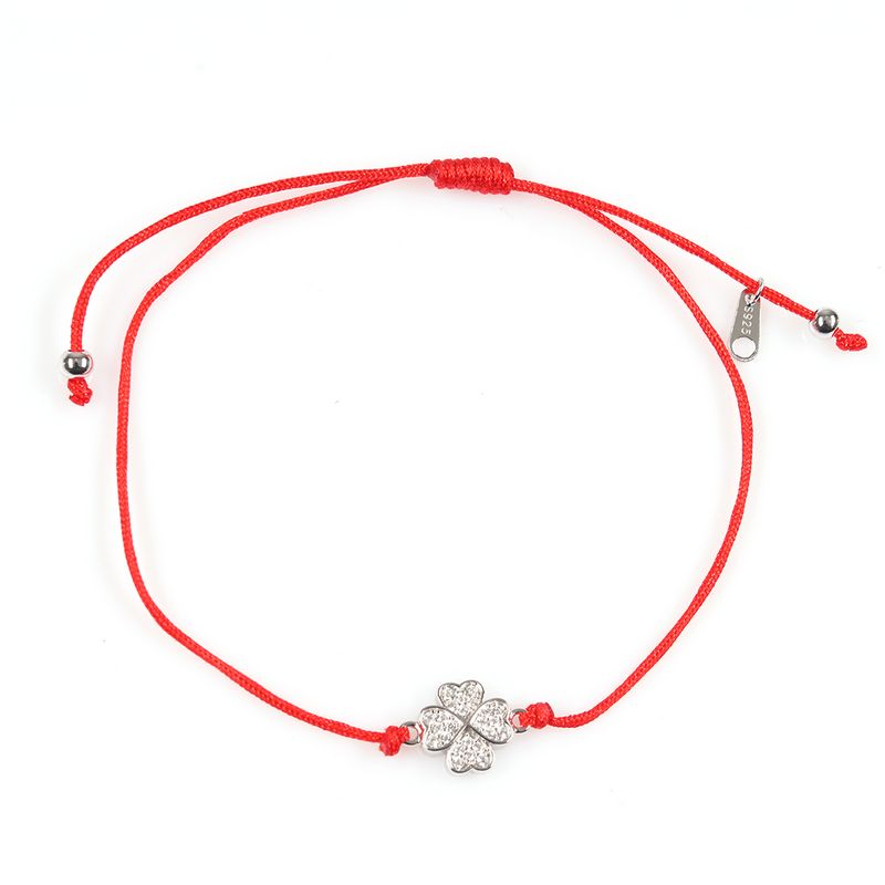 Bratara din argint cu snur rosu si pandantiv trifoi REF: 1B01SVG8PE3368-CL26V