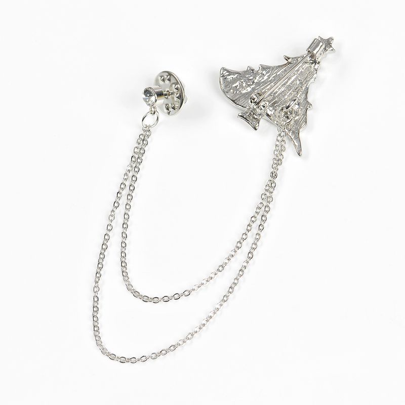 Brosa eleganta cu brad verde sidefat si detalii argintii, conectata cu doua lanturi fine pentru un efect stilat si modern. Accesoriu ideal pentru tinute festive.