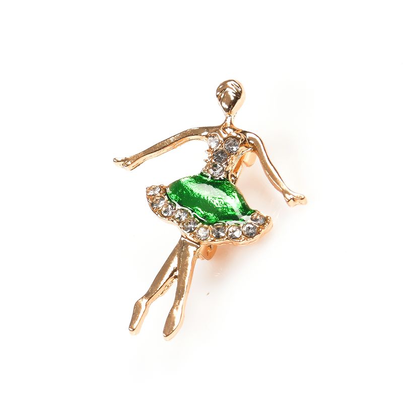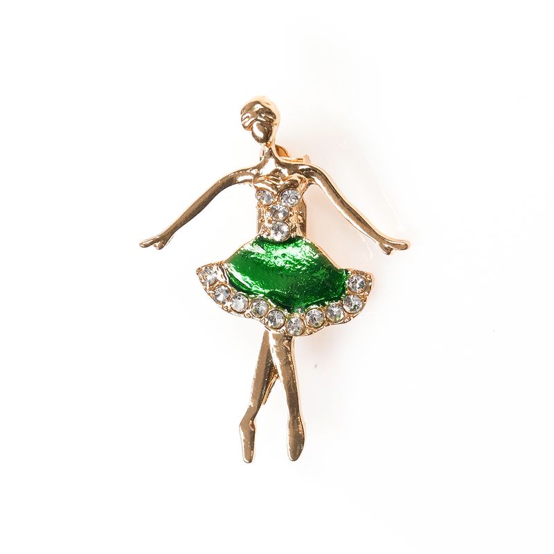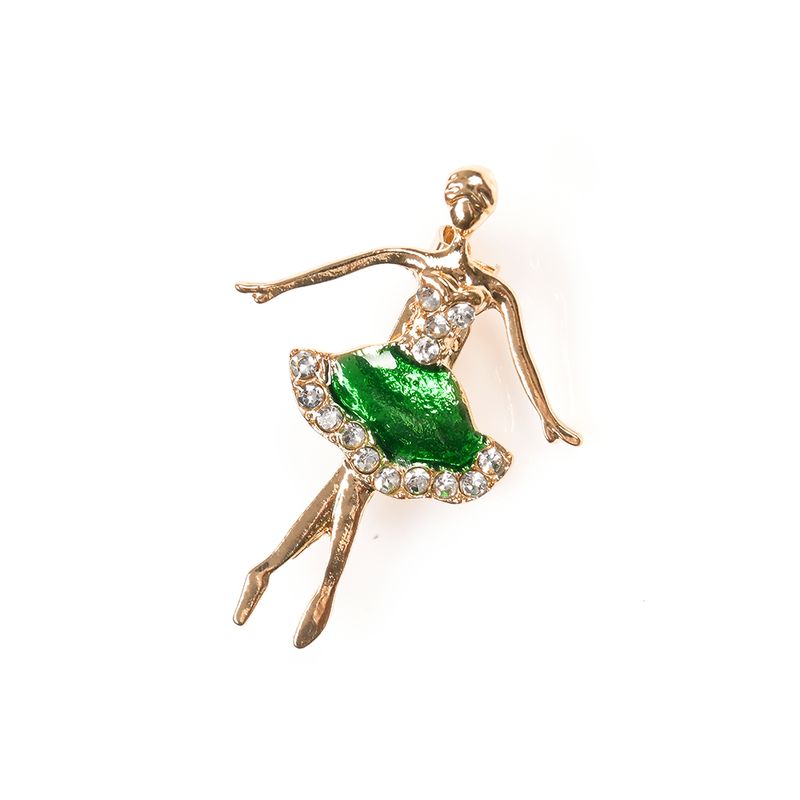 Brosa martisor balerina aurie cu fusta verde REF: 1A06DTC106-178-CL26V