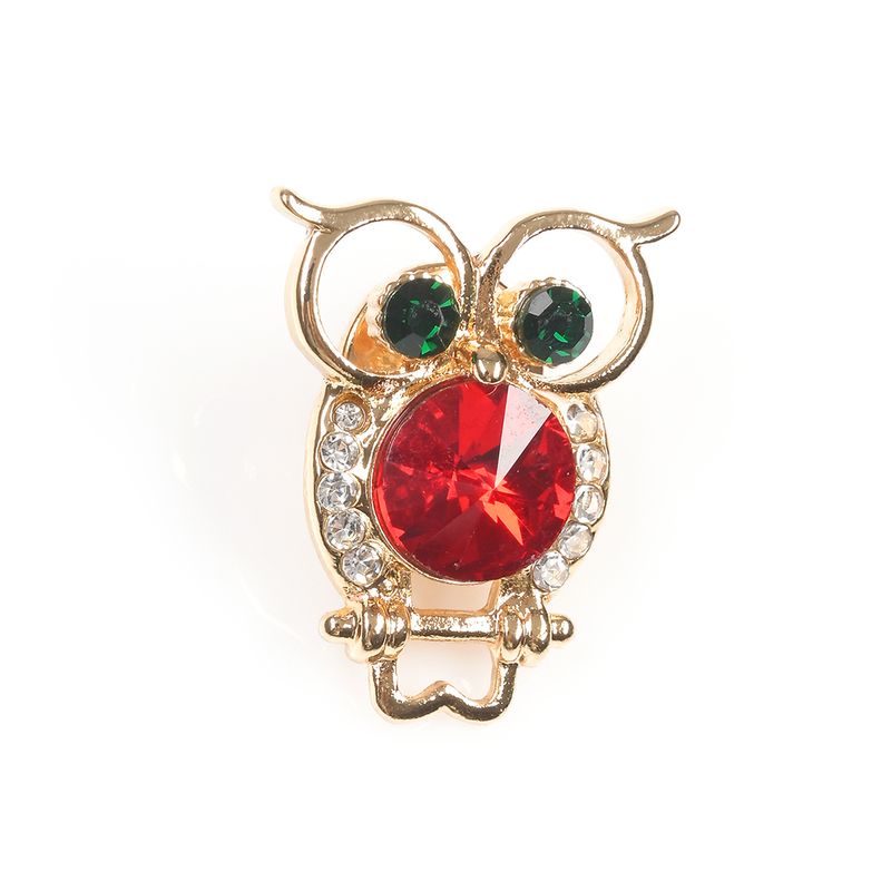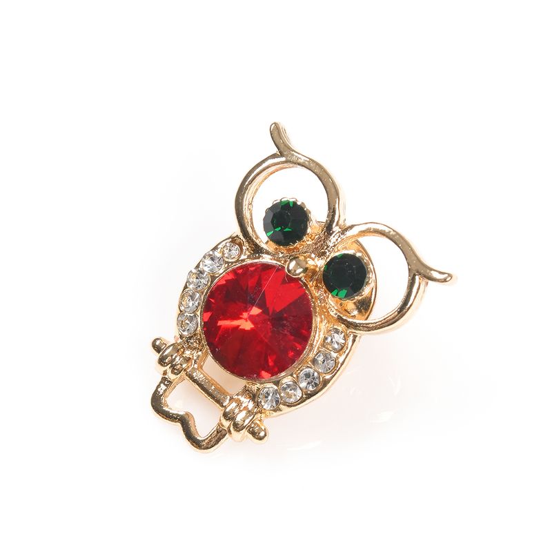 Brosa martisor bufnita aurie cu piatra rosie REF: 1A06DTC0LM-362-CL26V