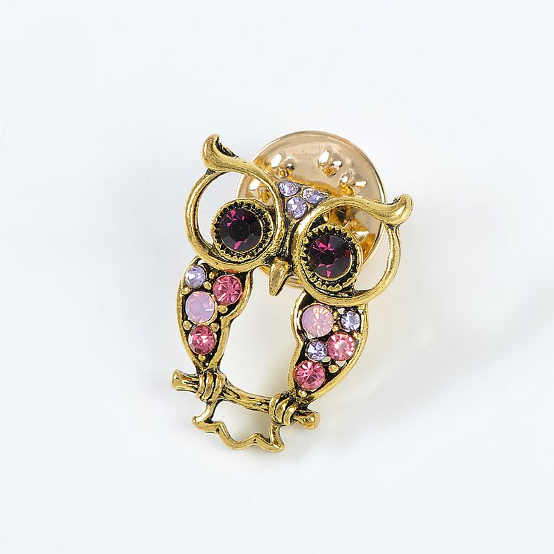 Brosa martisor bufnita aurie cu pietre roz REF: 1A06DTC00L-648-CL24V