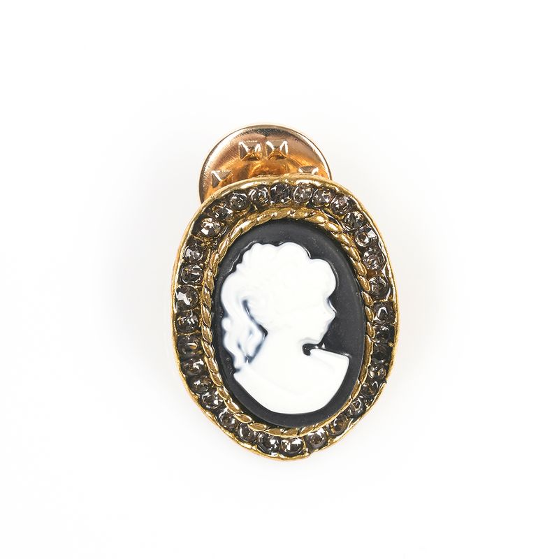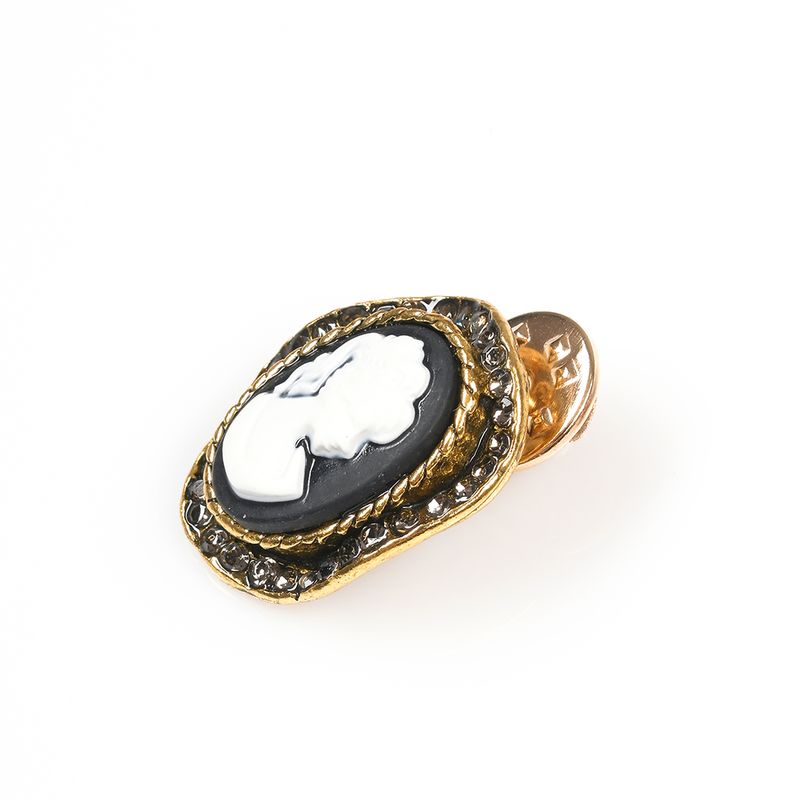 Brosa martisor camee cu profil alb si pietre negre REF: 1A06DTC0LM-359-CL26V