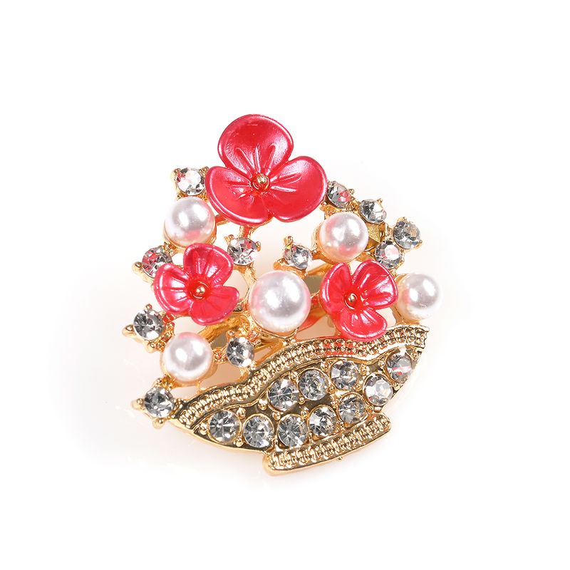 Brosa martisor cos auriu cu flori roz REF: 1A06DTCR26-517-CL26V