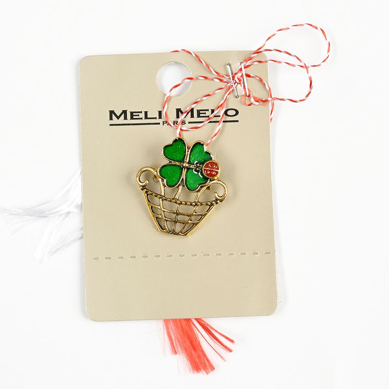 Tip produs: Brosa, contine snur de martisor si plic Material: Aliaj zinc Culoare: Verde, Auriu Compozitie: 70% Aliaj zinc, 30% Acrilic Dimensiune: ~ 2.5 x 2.5 cm Sistem de prindere: Ac