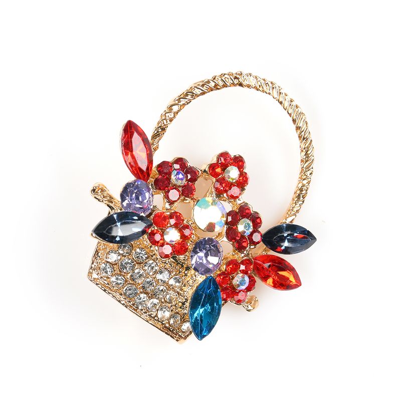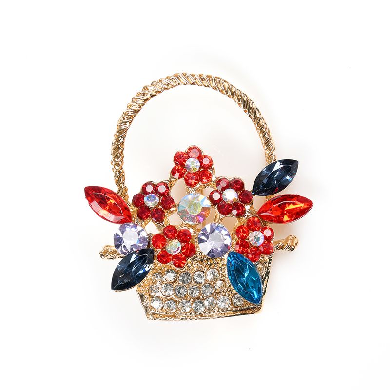 Brosa martisor cos cu flori in nuante de rosu REF: 1A06DTC0HH-496-CL26V