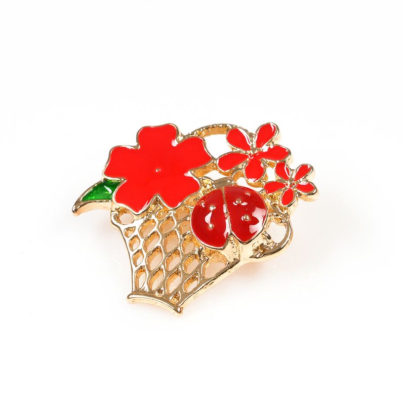 Brosa martisor cos cu flori rosii REF: 1A06DTC000PDF7-CL26V
