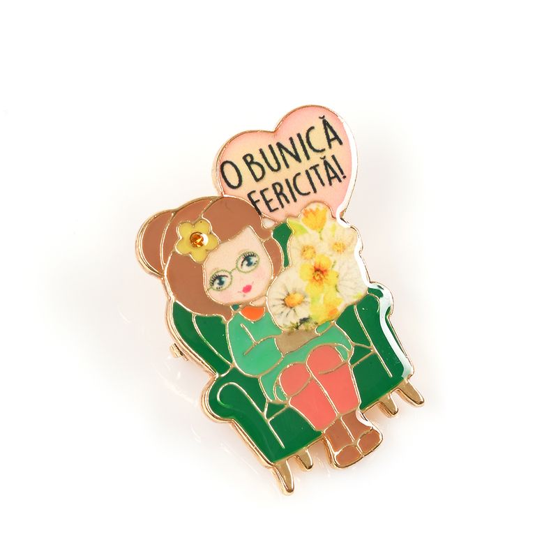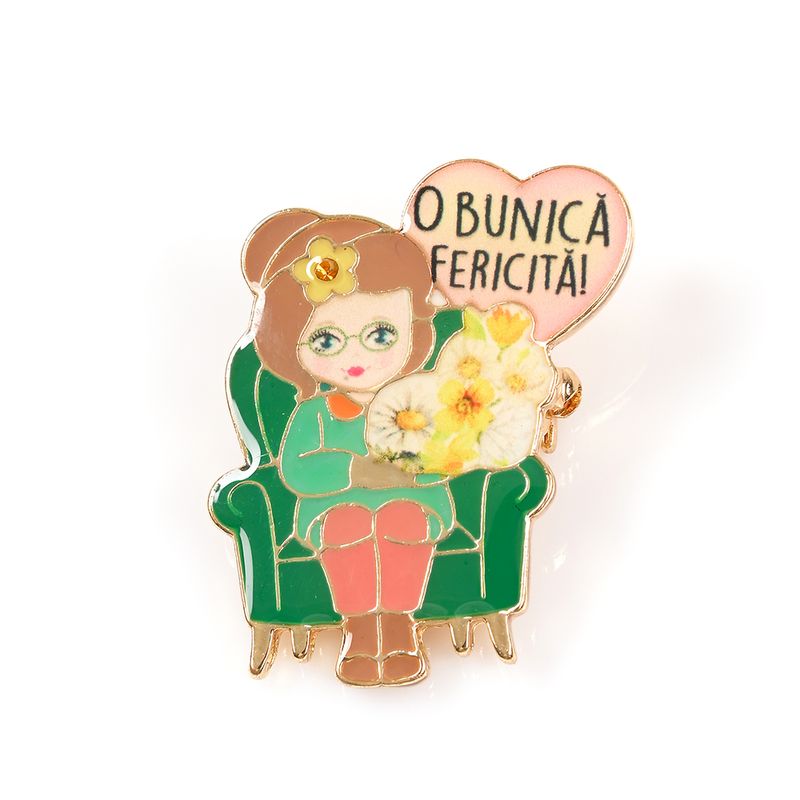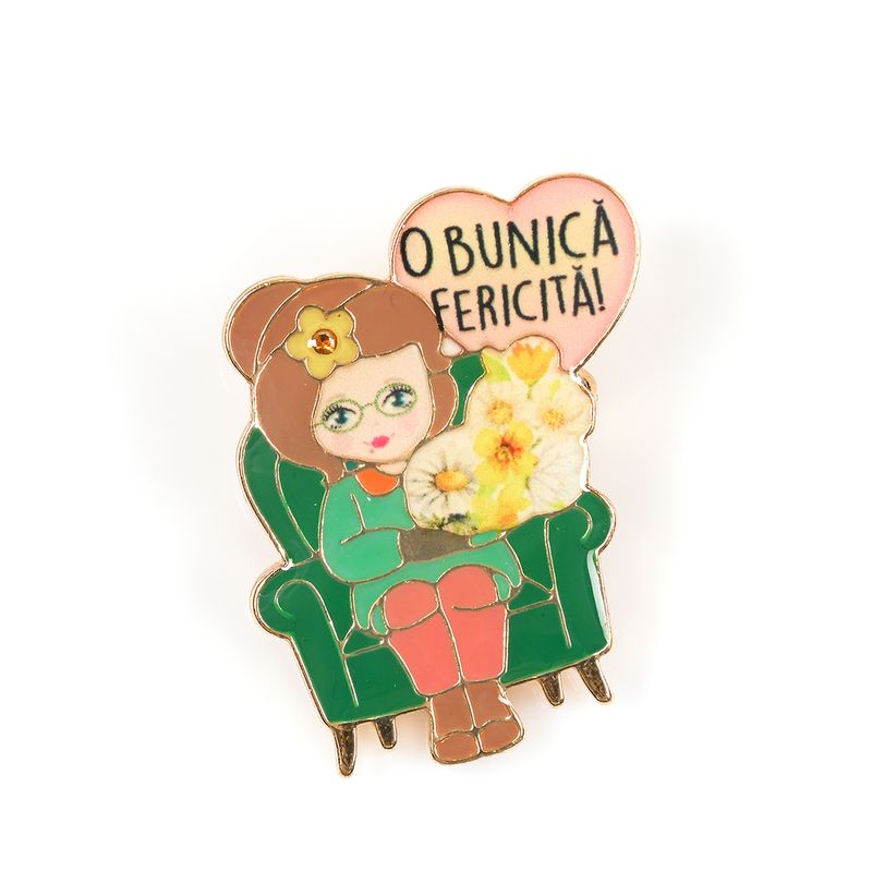 Brosa martisor cu mesaj O bunica fericita REF: 1A06KJF00DSG30-CL26V