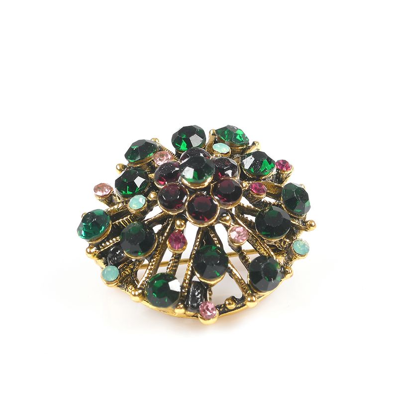 Brosa martisor cu pietre verzi si roz REF: 1A06DTC26-1211-CL26V