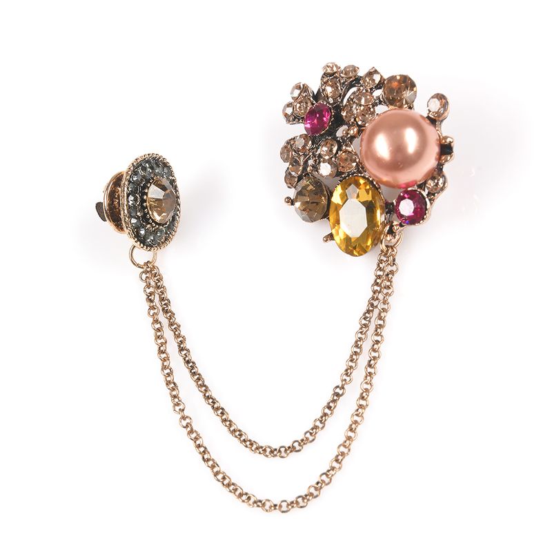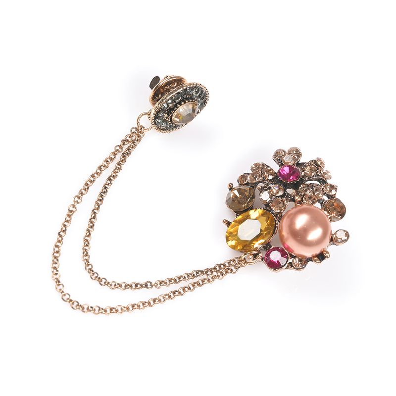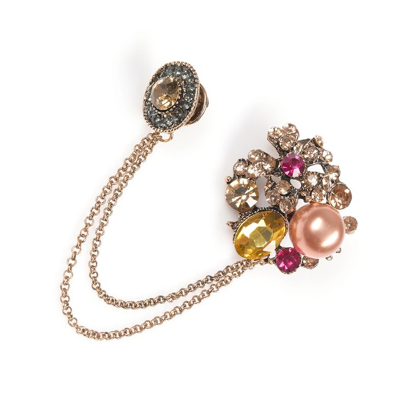 Brosa martisor dublu cu lant decorativ si pietre REF: 1A06DTCBROOCH3-CL26V