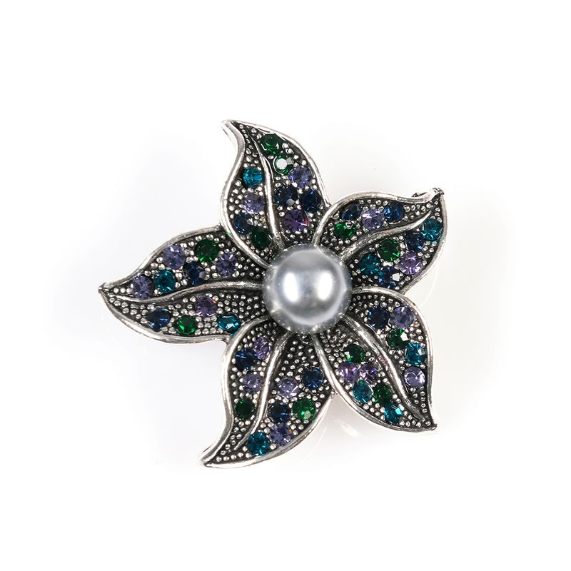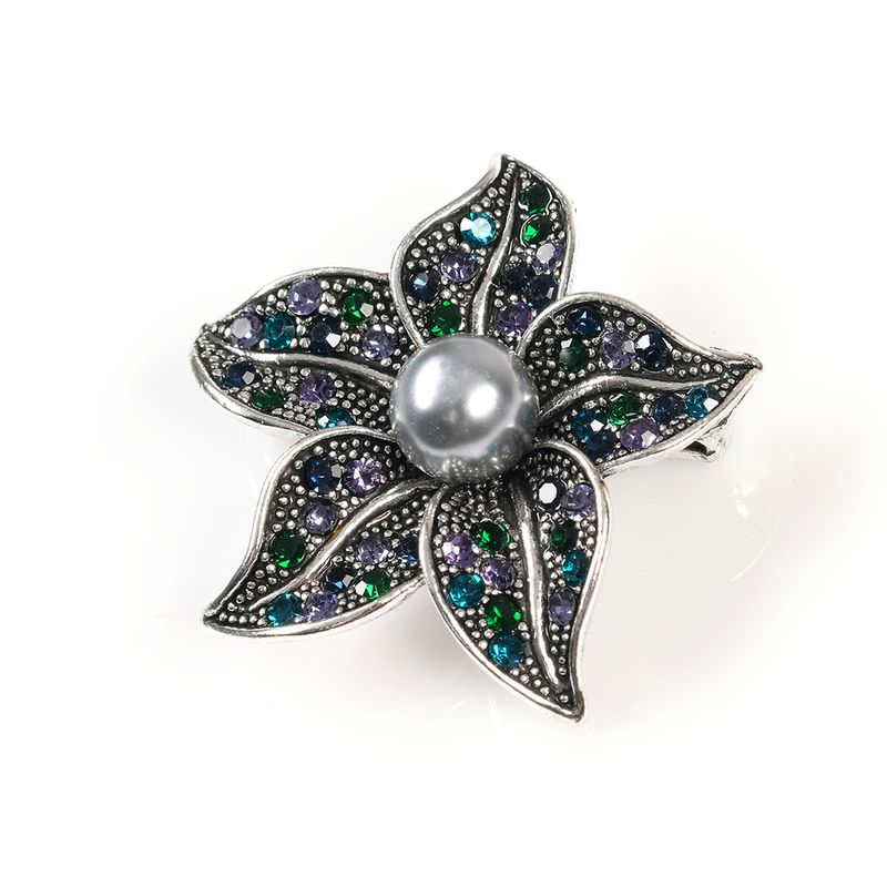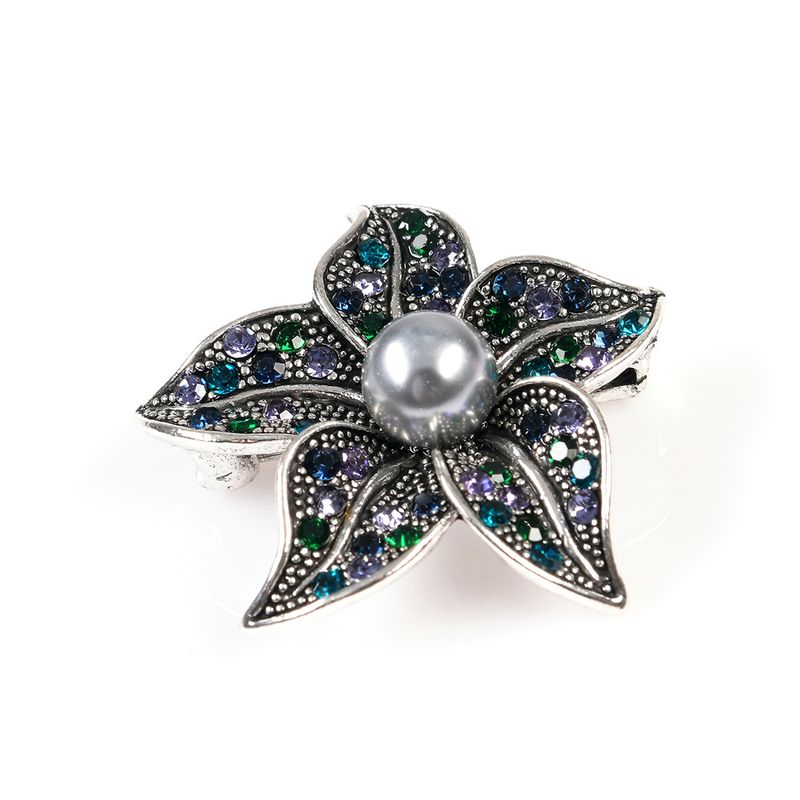 Brosa martisor floare argintie cu pietre colorate si perla REF: 1A06DTC26-2160-CL26V