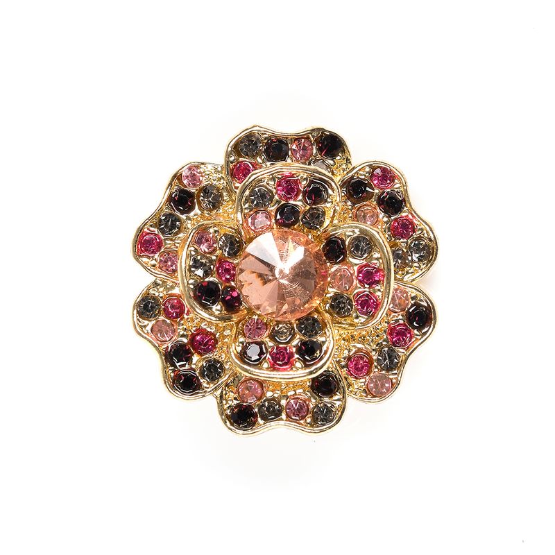 Brosa martisor floare aurie cu pietre roz si negre REF: 1A06DTC26-1358-CL26V