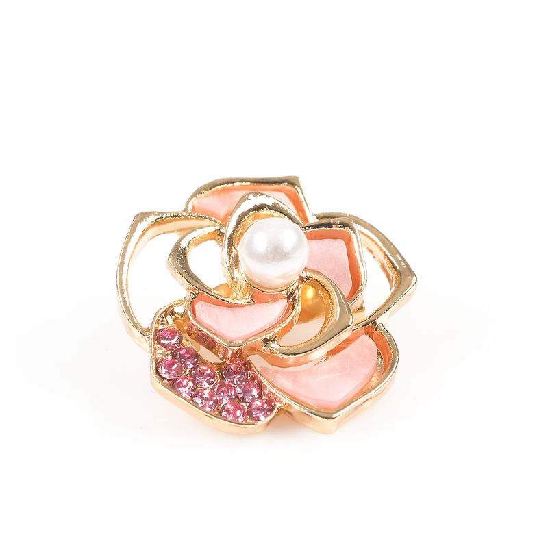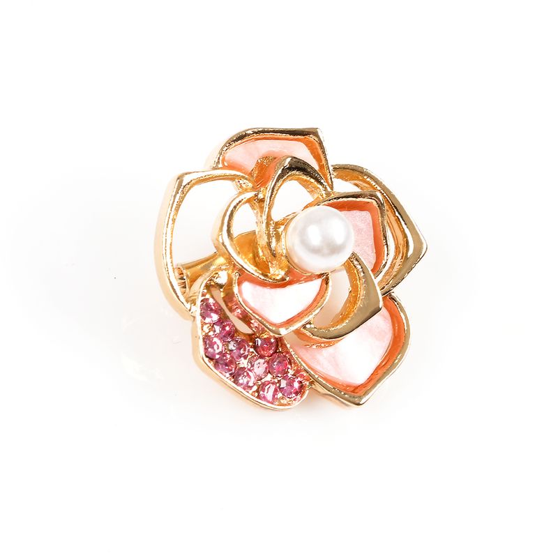Brosa martisor floare cu petale roz si perla alba REF: 1A06DTC26-2526-CL26V