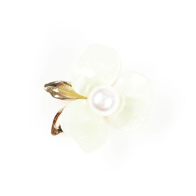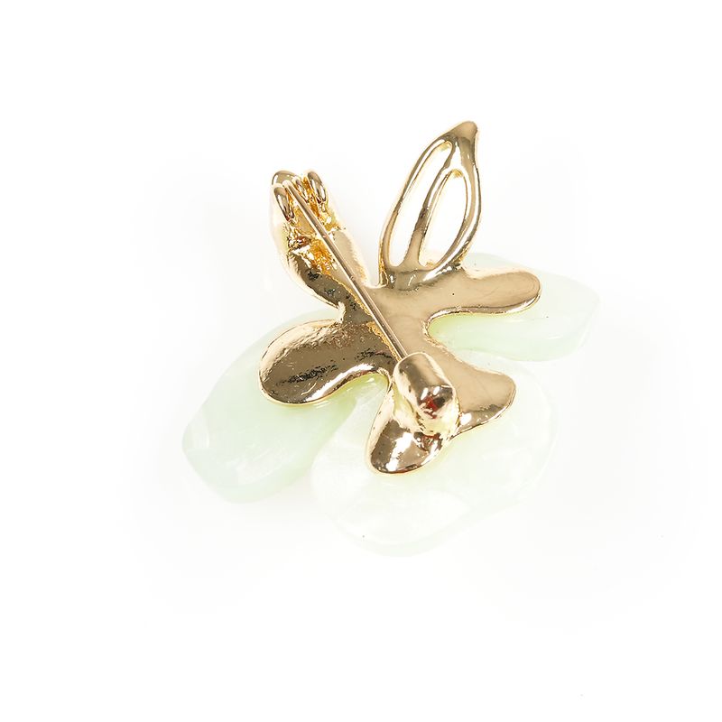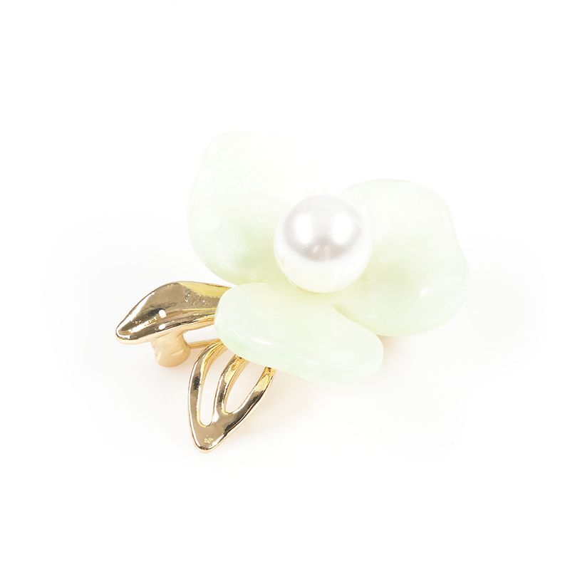 Brosa martisor floare cu petale verzi si perla alba REF: 1A06DTC26-1868-CL26V