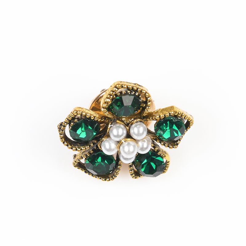 Brosa martisor floare cu pietre verzi si perle albe REF: 1A06DTC26-1151-CL26V