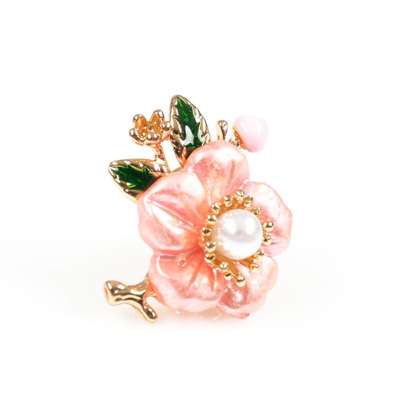 Brosa martisor floare roz cu perla alba REF: 1A06DTCLR-1145-CL26V