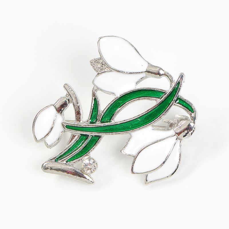 Tip produs: Brosa, contine snur de martisor si plic Material: Aliaj zinc Culoare: Alb, Verde Compozitie: 50% Aliaj zinc, 50% Acrilic Dimensiune: ~ 3.5 x 3.5 cm Sistem de prindere: Ac