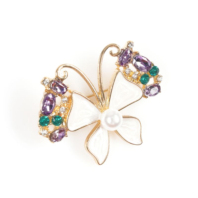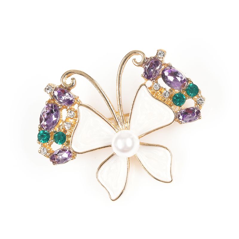 Brosa martisor fluture alb cu pietre multicolore REF: 1A06DTC26-1776-CL26V