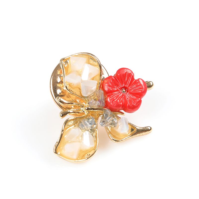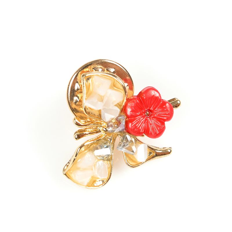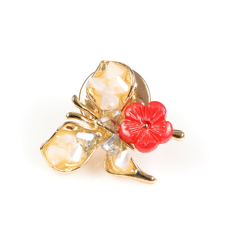 Brosa martisor fluture auriu cu floare rosie REF: 1A06DTC0LM-142-CL26V