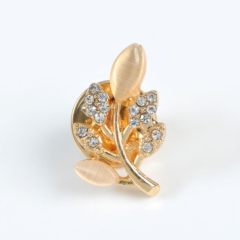 Brosa martisor frunza aurie cu pietre acrilice REF: 1A06DTC00L-573-CL24V