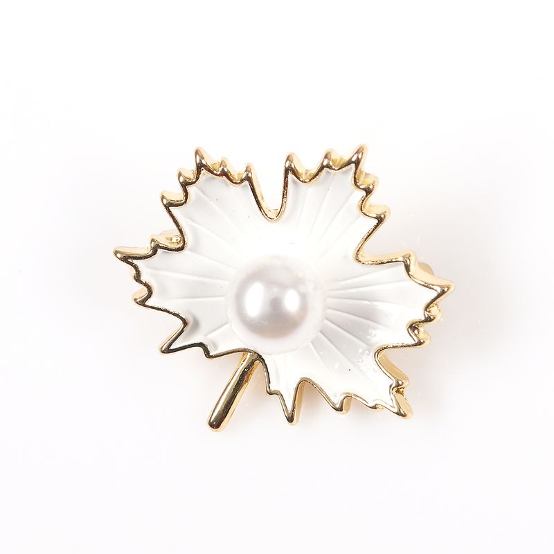 Brosa martisor frunza cu perla alba REF: 1A06DTC26-1820-CL26V