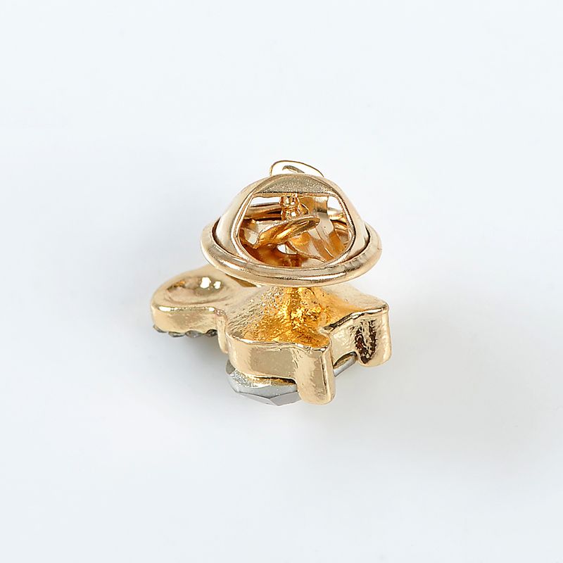 Tip produs: Brosa, contine snur de martisor si plic Material: Aliaj zinc Culoare: Auriu Compozitie: 50% Aliaj zinc, 50% Acrilic Dimensiune: ~ 1 x 1.5 cm Sistem de prindere: Pin