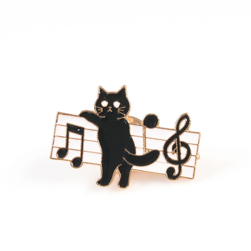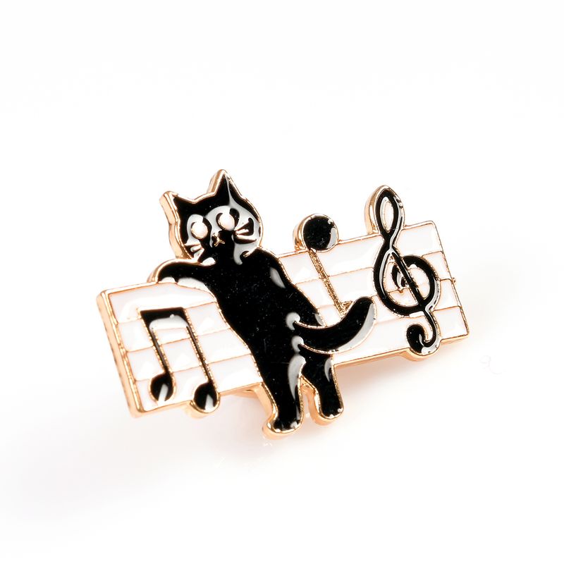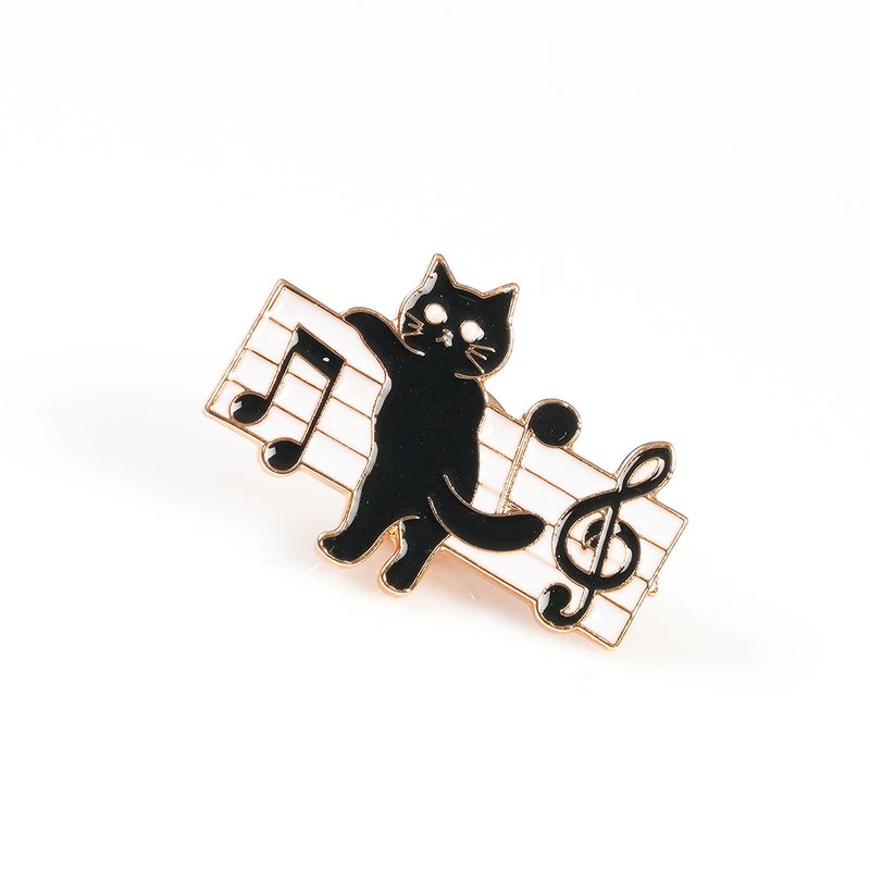 Brosa martisor pisica neagra si note muzicale REF: 1A06DTC26-2866-CL26V