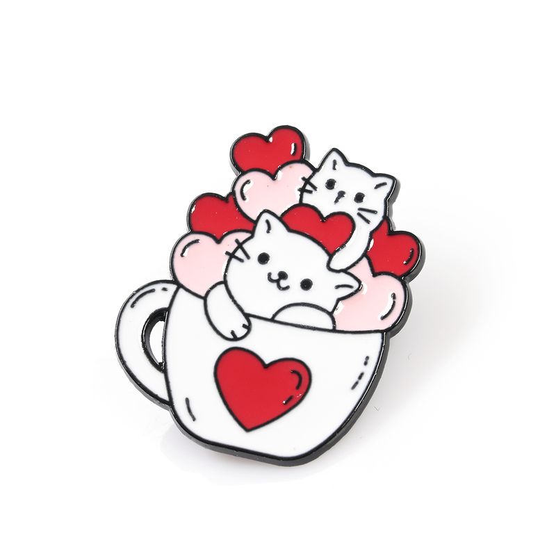 Brosa martisor pisici albe cu inimi REF: 1A06DTC26-3409-CL26V