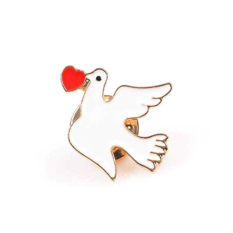 Brosa martisor porumbel alb cu inima REF: 1A06DTC106-205-CL26V