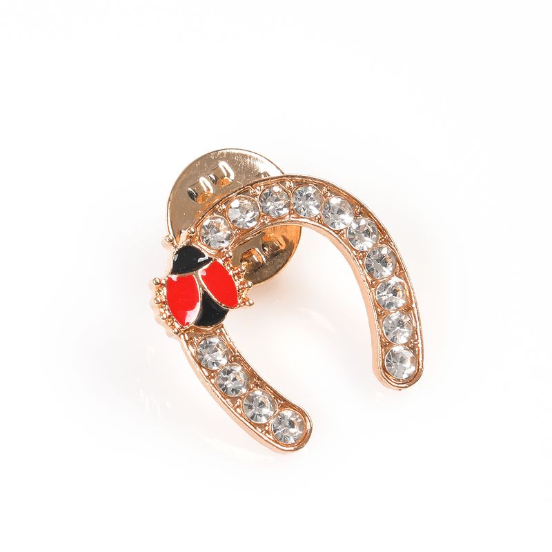 Brosa martisor potcoava aurie cu pietre acrilice si buburuza REF: 1A06DTCR26-621-CL26V