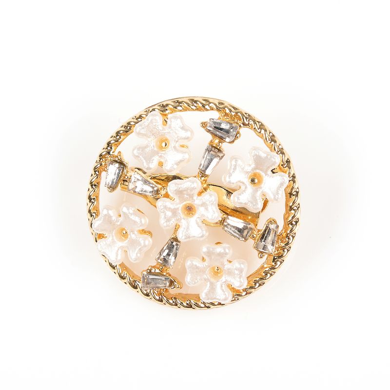 Brosa martisor rotund cu flori albe REF: 1A06DTCLR-1155-CL26V
