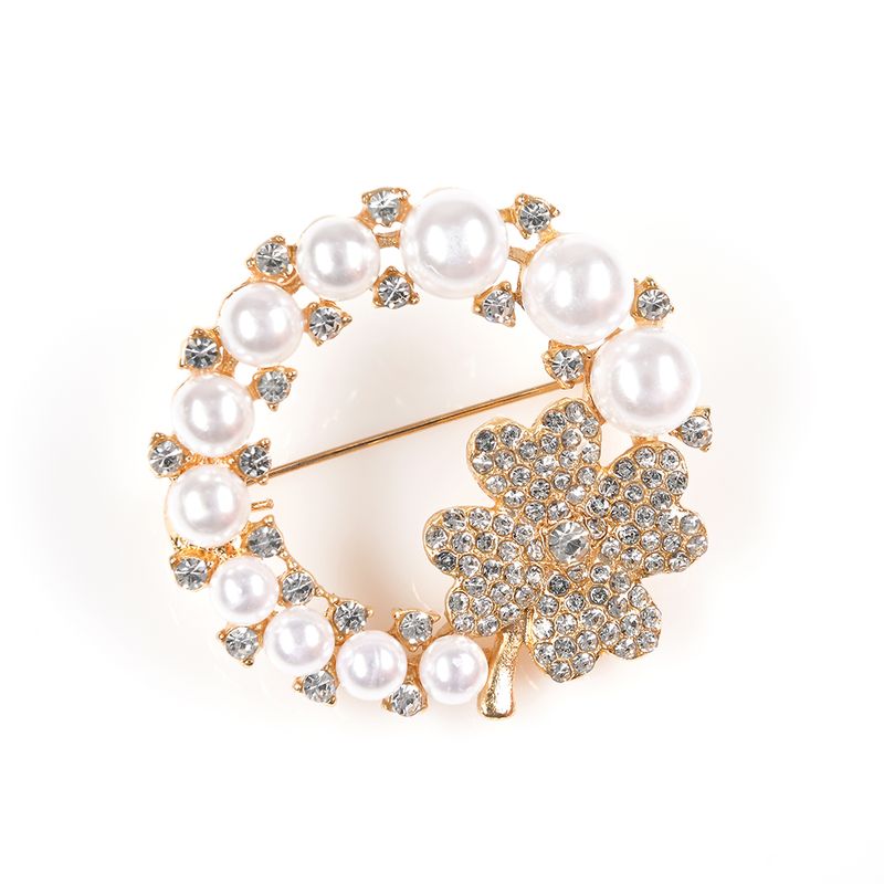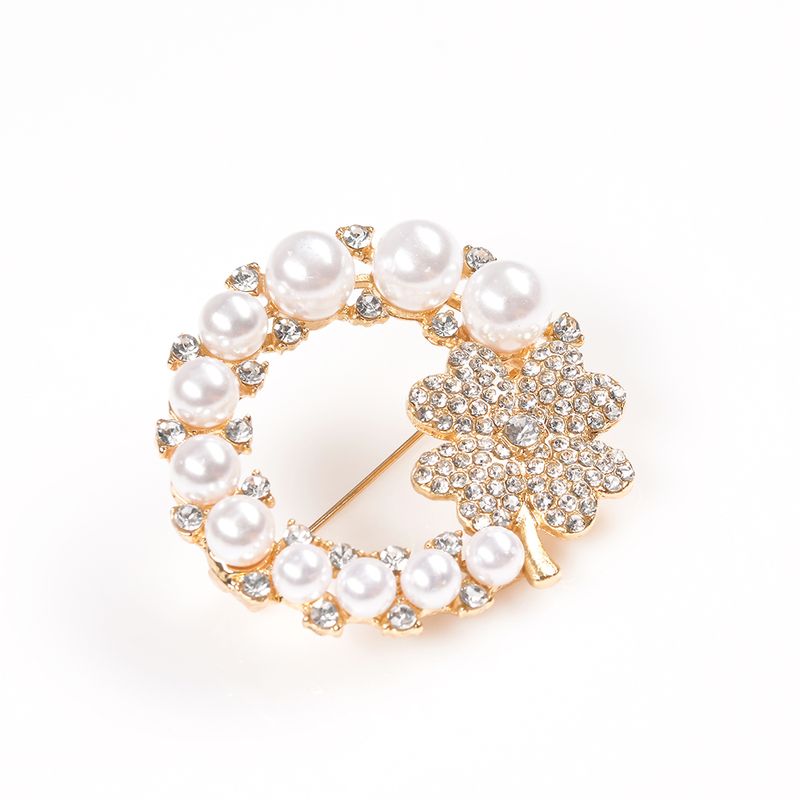 Brosa martisor rotund cu perle si trifoi auriu REF: 1A06DTC26-3254-CL26V