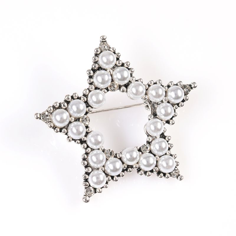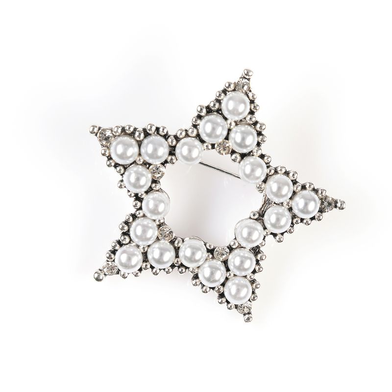 Brosa martisor stea argintie cu perle albe REF: 1A06DTC26-1462-CL26V