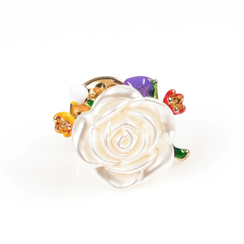 Brosa martisor trandafir alb cu pietre colorate REF: 1A06DTC26-2083-CL26V