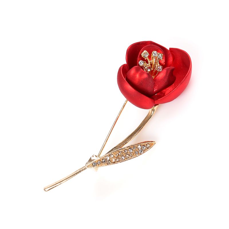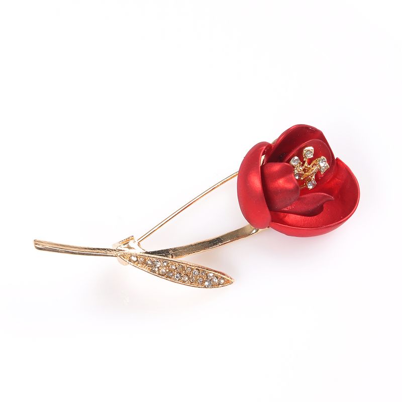 Brosa martisor trandafir rosu cu detalii aurii REF: 1A06DTCHH26-69-CL26V