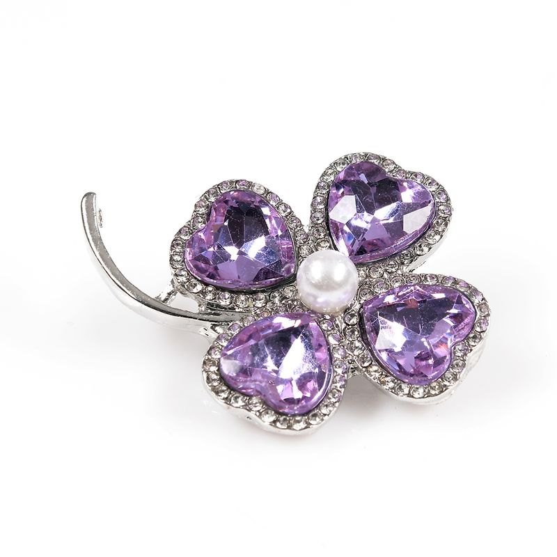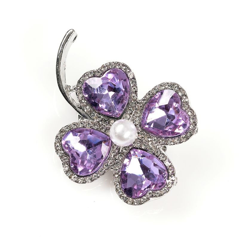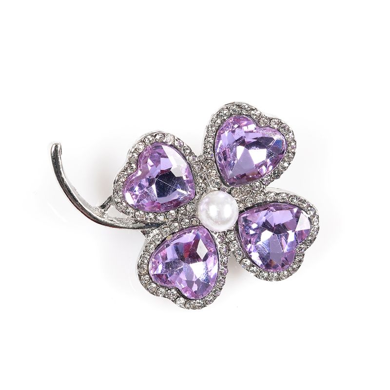 Brosa martisor trifoi argintiu cu pietre mov REF: 1A06DTC26-3770-CL26V