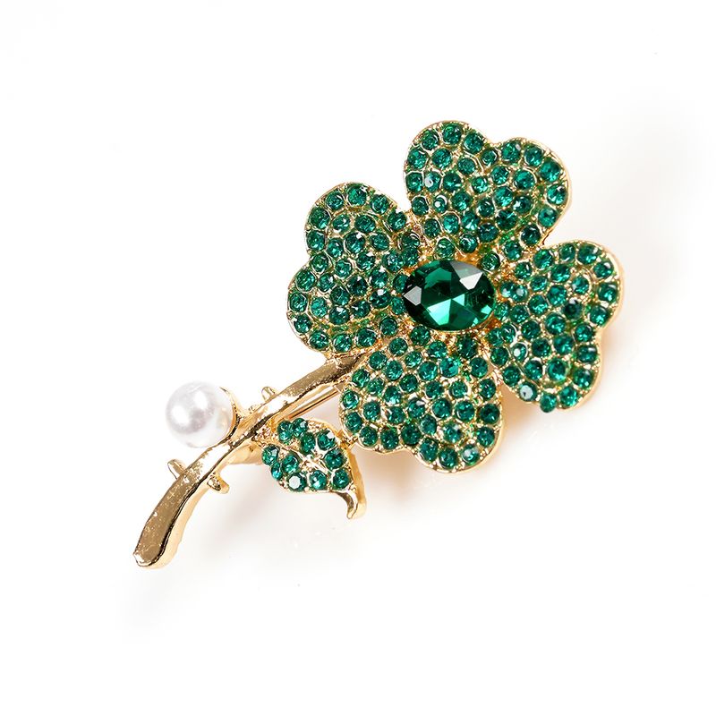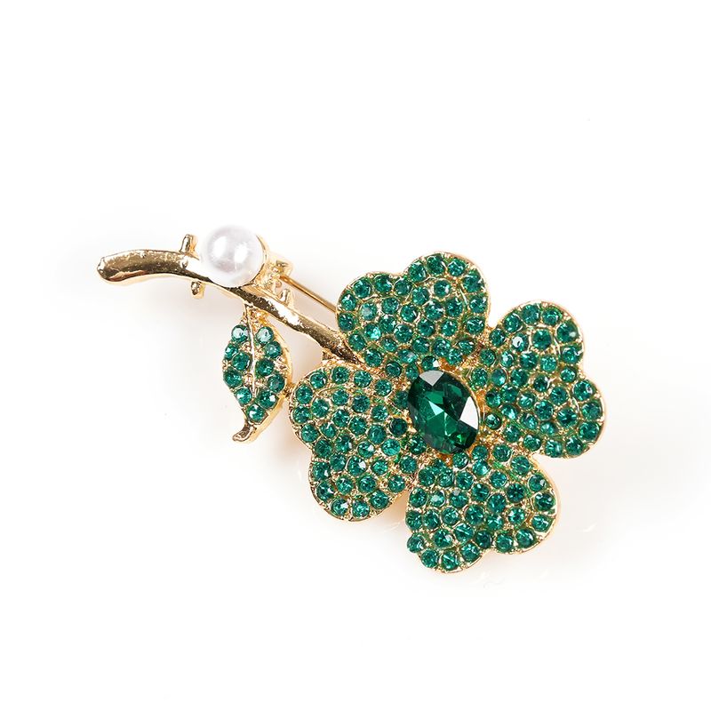 Brosa martisor trifoi auriu cu pietre verzi si perla alba REF: 1A06DTC26-3069-CL26V