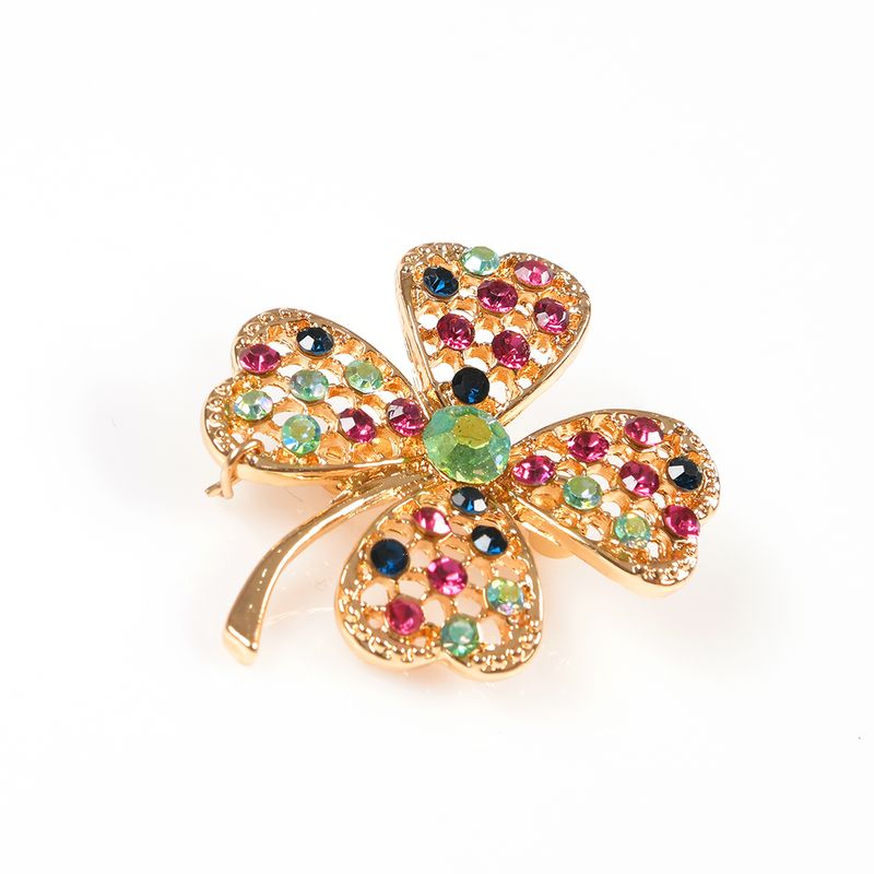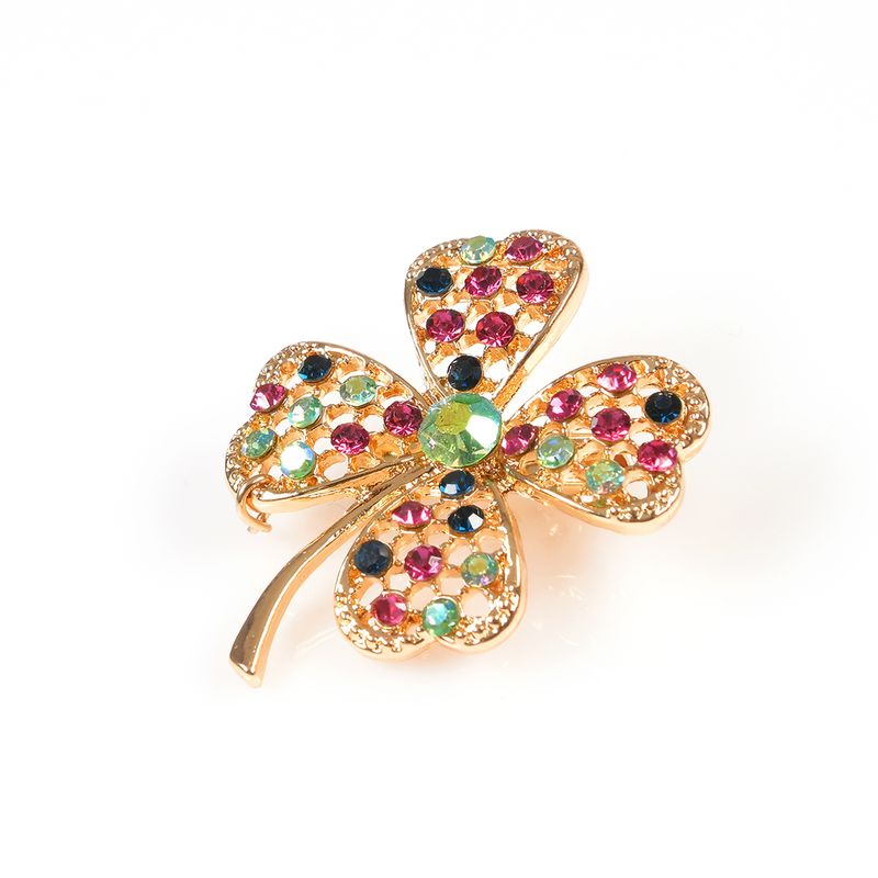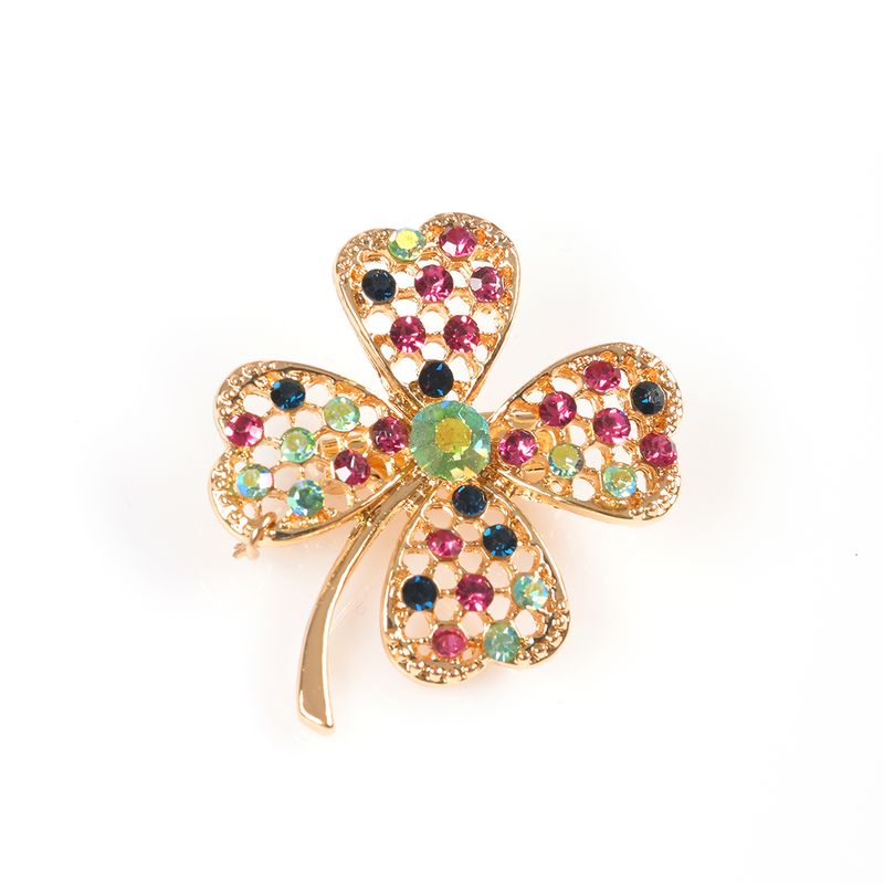 Brosa martisor trifoi cu patru foi decorat cu pietre colorate REF: 1A06DTC26-183J-CL26V