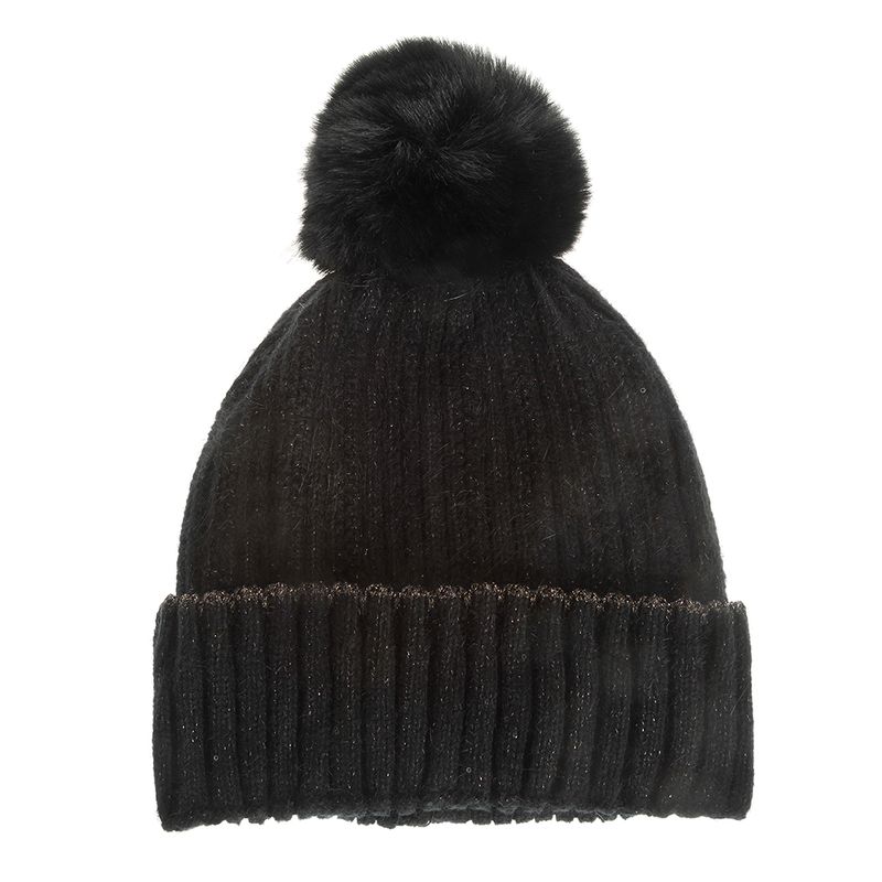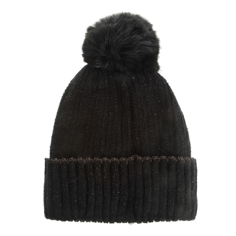 Caciula dama tricotata neagra cu mot pufos REF: 1L01LEAMZ312-1-CL24T