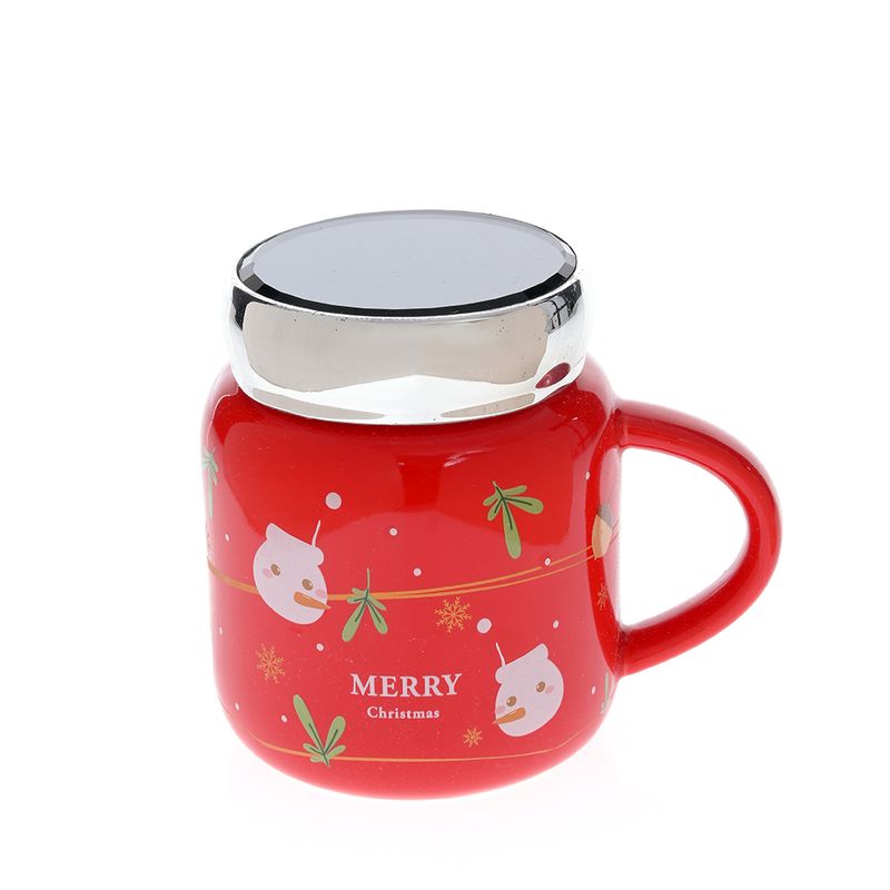 CraciunCeramicaCana rosie cu capac Merry Christmas 400 ml