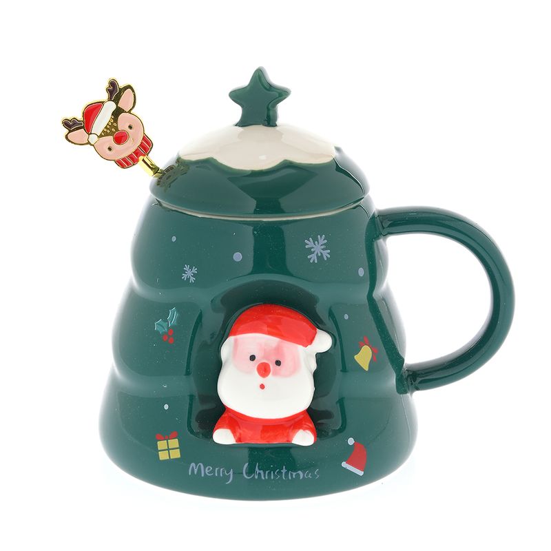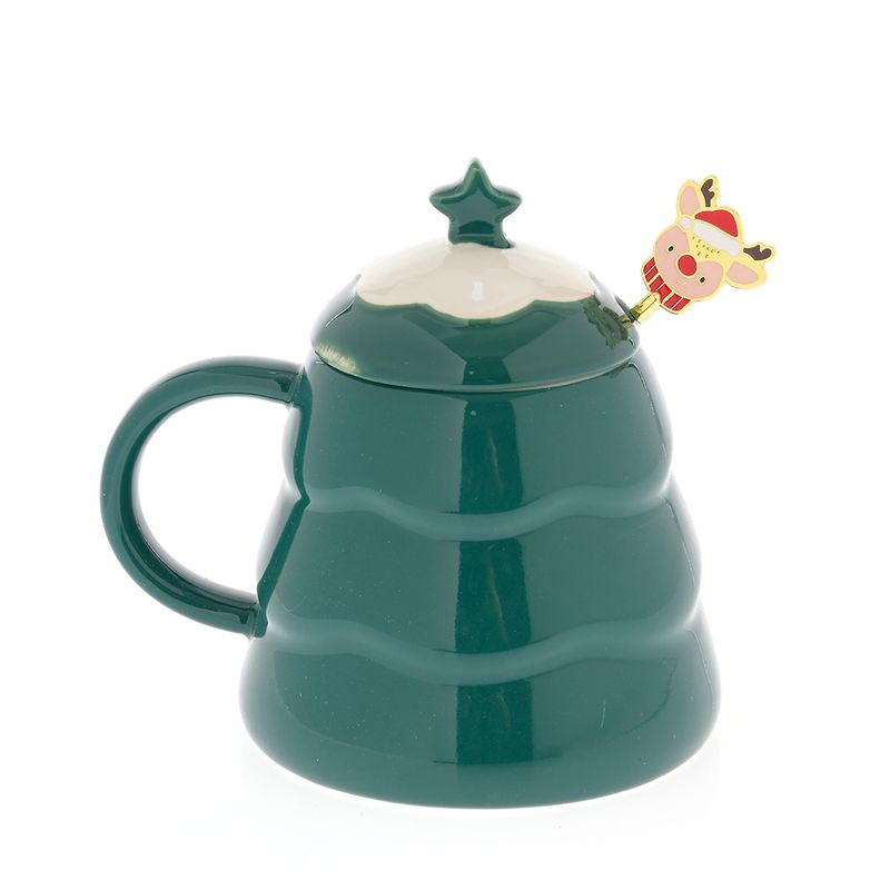 CraciunCeramicaCana verde in forma de brad 450 ml