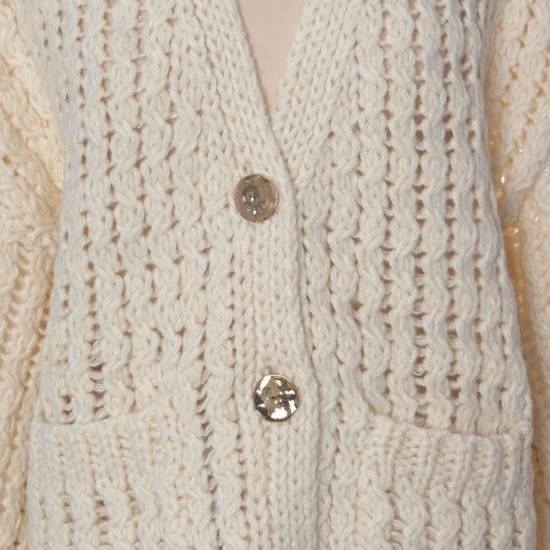 Cardigan crem tricotat cu nasturi mari REF: 1R07YIU0007338-CL25T