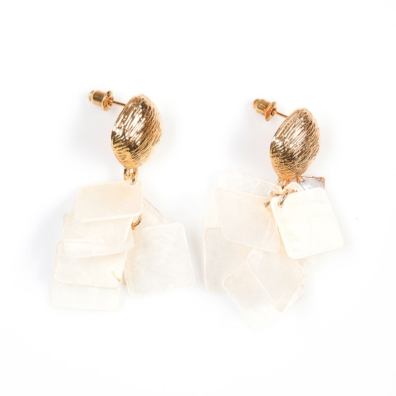 Cercei eleganti cu placute sidef si baza aurie texturata REF: 1A07DTCDE26395-CL25T