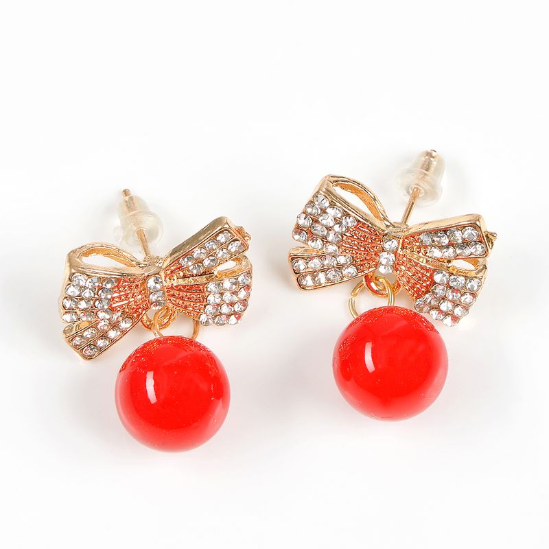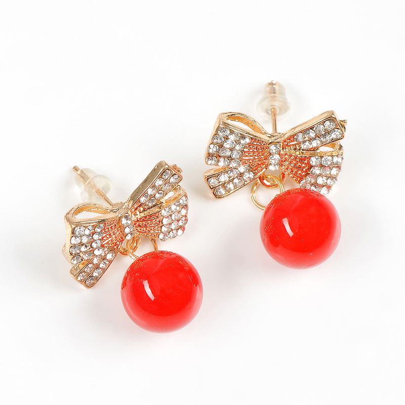 Cercei eleganti cu fundita aurie incrustata cu cristale si glob rosu lucios in suspensie. Accesoriu festiv, perfect pentru un plus de stralucire in sezonul sarbatorilor.