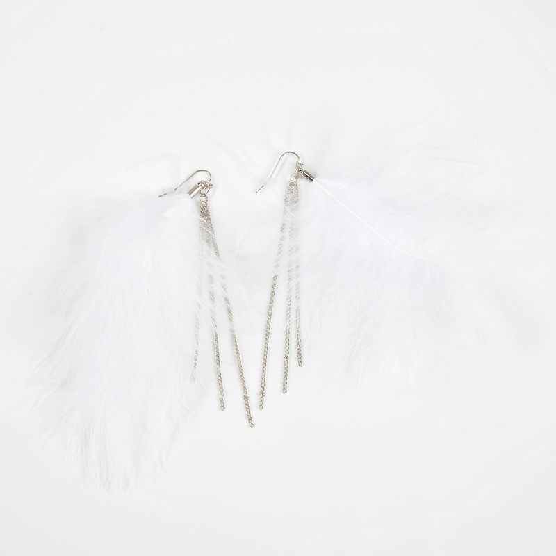 Cercei lungi cu pene albe si lanturi fine REF: 1A07CAJE142652-CL24T