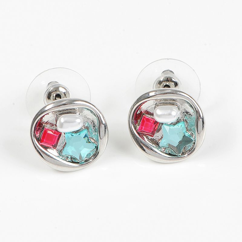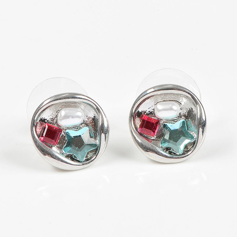 Cercei rotunzi argintii cu motive stelare si accente colorate REF: 1A07DTCDE26127-CL24T