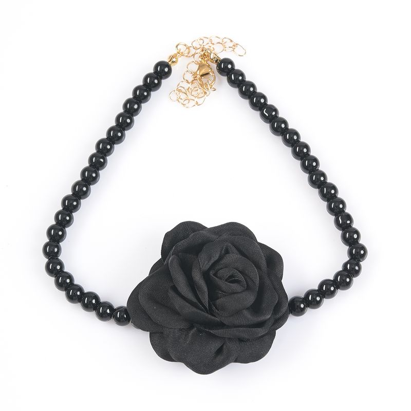 Colier cu margele negre si trandafir REF: 1A08DTCDN30073-CL25T