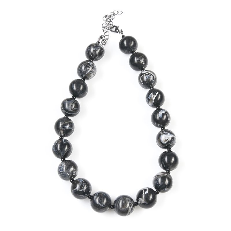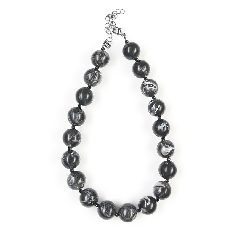 Tip produs: Colier Culoare: Gri, Negru Material: Acrilic Compozitie: 88% Acrilic, 10% Aliaj zinc, 2% Poliester Lungime: ~ 40 cm Lungime lant aditional: 10 cm